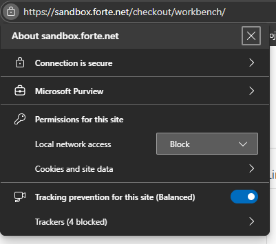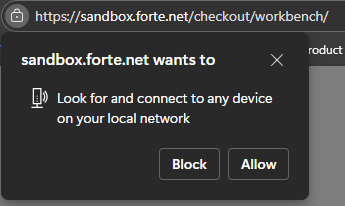 Recent updates to Chrome, Edge, and other Chromium-based browsers now require permission for websites to connect to local devices on your network. This change may affect Forte Checkout (FCO) when a local card reader (such as eDynamo or DynaFlex) is used.