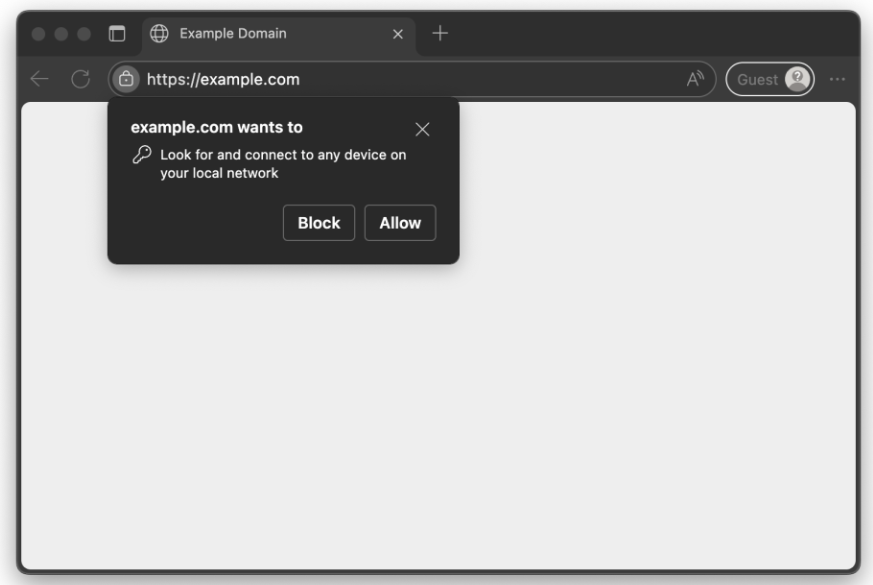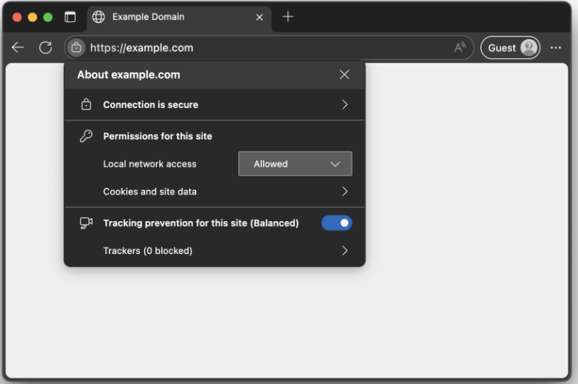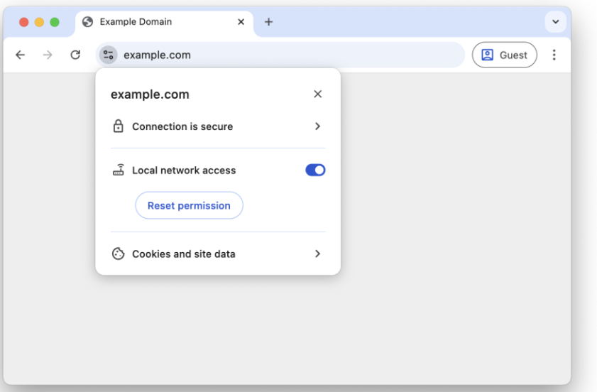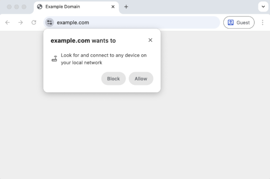 They can also always navigate to the browser settings → Privacy and security → Site settings → Select the website from which they are trying to access the device → Scroll down to “Local Network Access” → Select “Allow” from the drop-down.