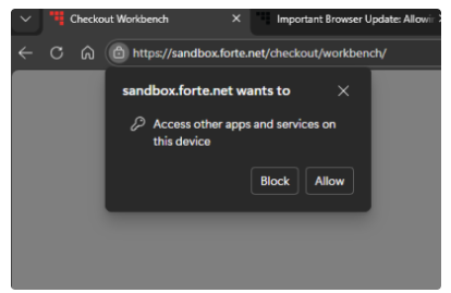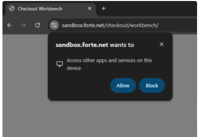If you are prompted that the CSG Forte product “wants to access other apps and services on this device”, click Allow. CSG Forte communicates only with your device and does not access other devices on your local network.