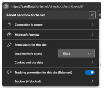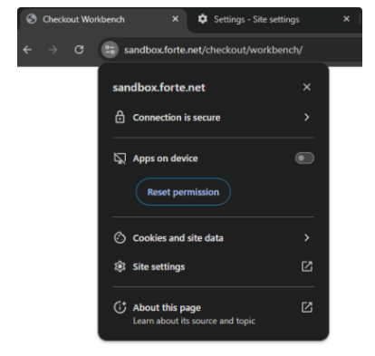 If the user has already blocked the access, they can click on the site settings and click on “Reset Permission” for the prompt to appear again, or use the "Local network access" toggle button to allow access. You will need to "Reload" the payment page.