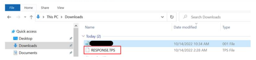 RESPONSE.TPS) appears in your folder.Open it in Notepad or Notepad++ to review the contents.